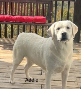 We loved Addie’s momma, & we absolutely love her! She’s a good, good girl! Addie listens well, seldom causes mischief, follows us around, is so loveable & just as sweet as can be. We kept Addie out of our Maddie/Junior litter 8/23/2023.